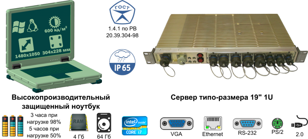 Высокопроизводительные защищенные компьютеры способны безотказно решать задачи обработки информации, управления, навигации и предназначены для работы в особо сложных условиях окружающей среды: при наличии низких и высоких температур, грязи, пыли и влаги, а также вибраций.
